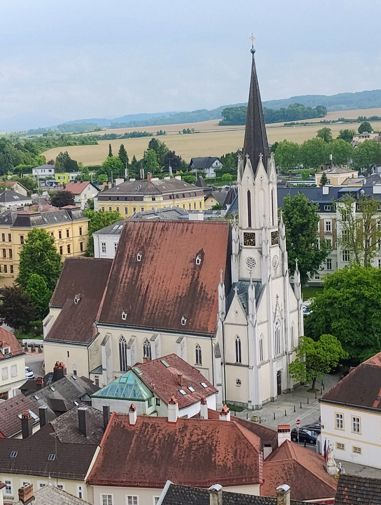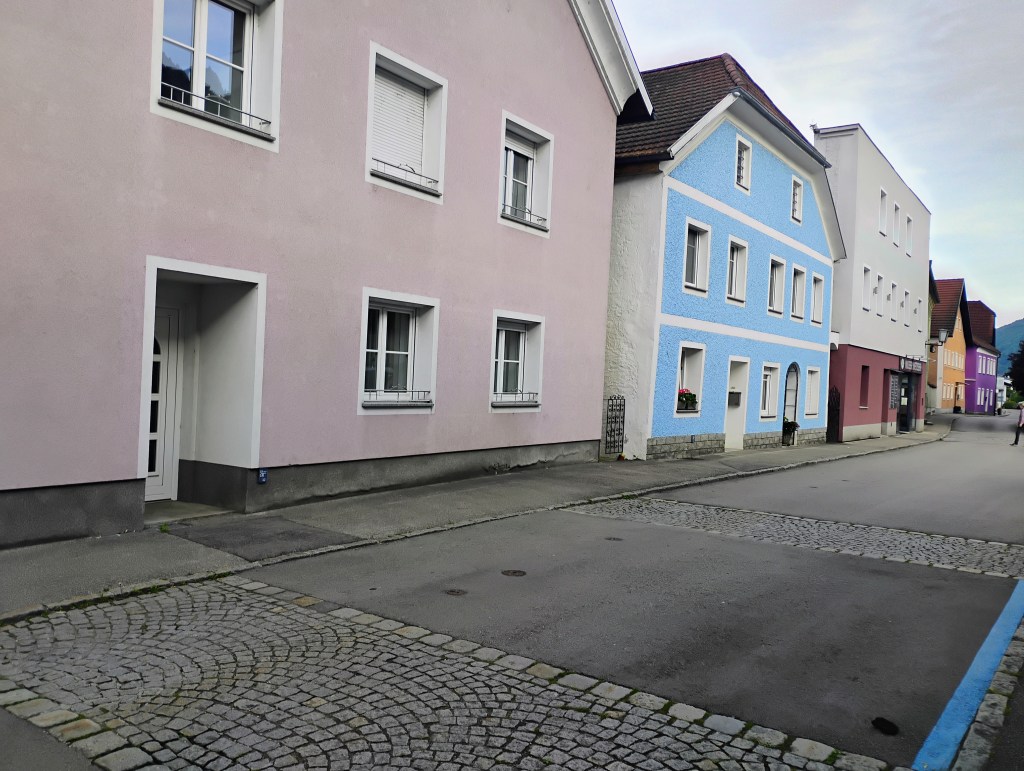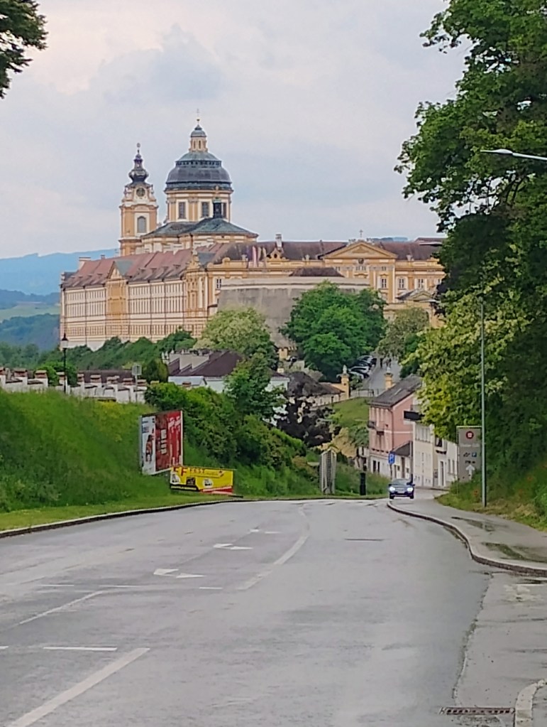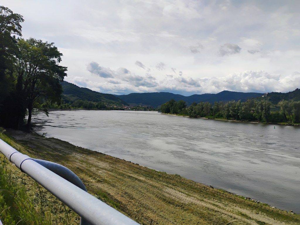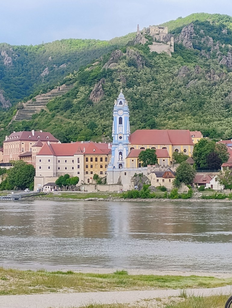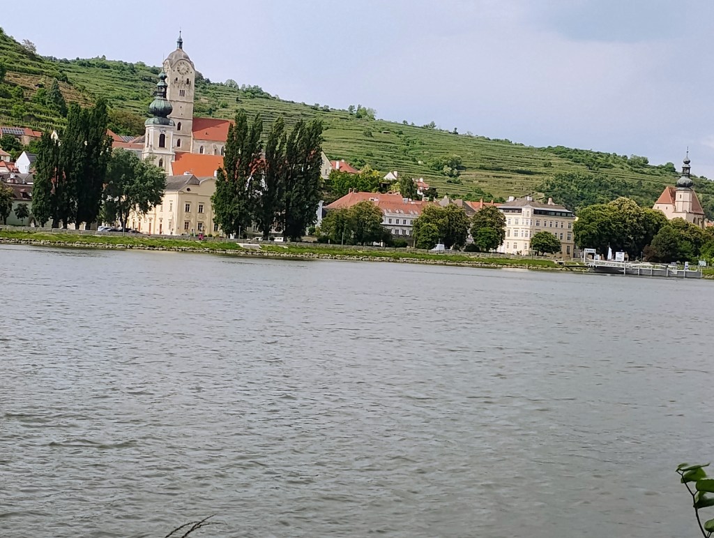 First part of the journey was a long the Danube. A lot of barge traffic on the river. The width of the river is impressive. The second half of the day started to be older towns on the other side of the river with a more European feel. With some castles in the hillside. Must also be the part cruise ships really like as you can see two floating around. Durenstein was packed with visitors so it was got tangled up with cruise visitors when I was there.When I looked at the forecast in December average high was around 70. Today and through when I arrive in Passau it will be a high of 60. The day after it will be starting be in the low 70’s again. And it doesn’t rain much. Need one more day of rain to get my normal half of days on bike tour it rains. For the Danube Delta tour the suggested a hard shell rain jacket as it gets colder there. Didn’t relish carring it round on my bike part of the trip. Slept wearing it so glad I did have it with me.