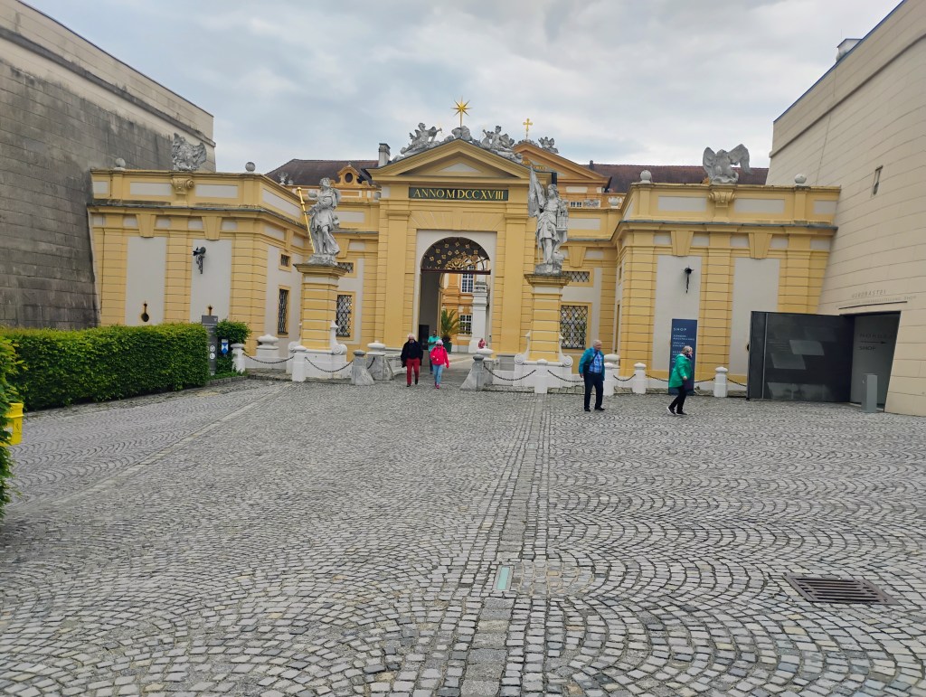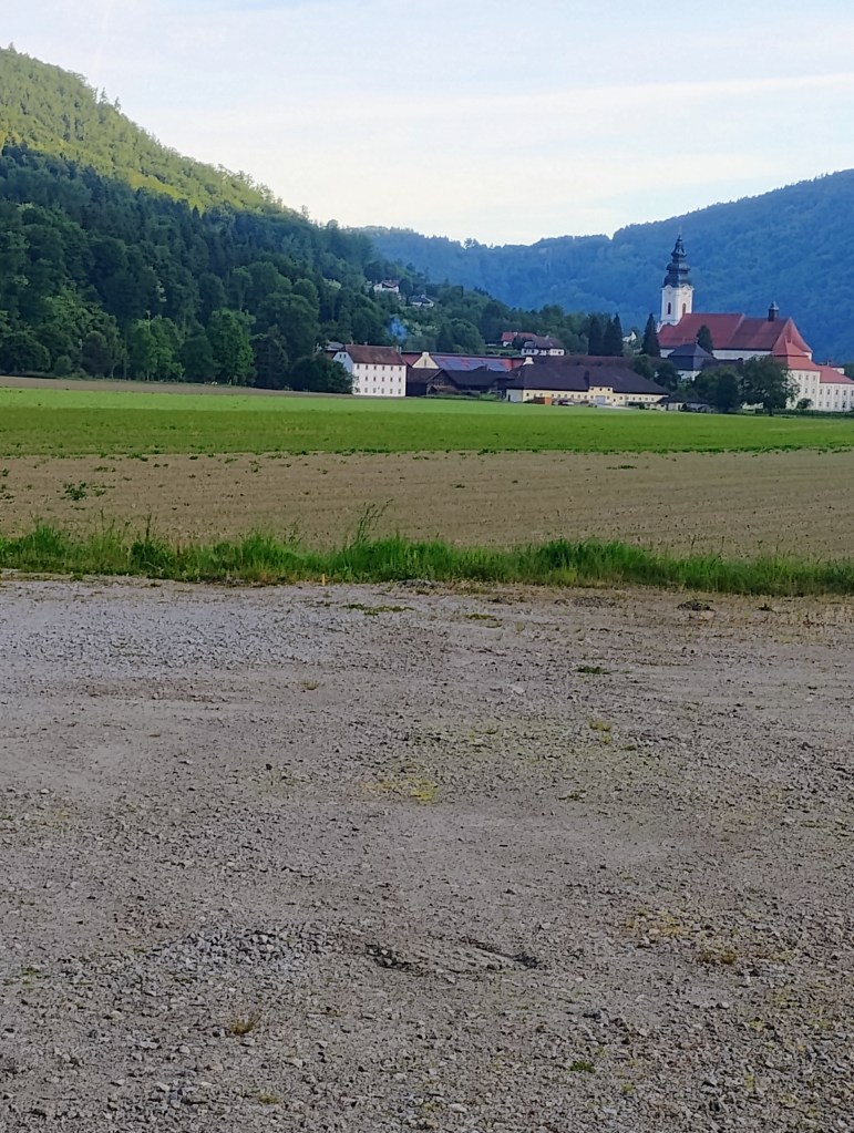 Took a tour of Melk Abby. It was started in 1089 the two previous buildings were burned and this one was built on 1700’s. If you ever in the neighborhood it is definitely a place to go, especially the church.It is strange to be on the path and approach a secure building with a barrier for cars to enter and on the side is an entry for bicycles to do the path.Was happily biking toward Grein and take the ferry to the other side of the river. At the entrance to load a sign said the start service on May 20. It was late but along the path there was a giant box that was big enough for me to hide the bike and me. Left at daylight just to make sure no one noticed. Wild camping is illegal in Austria